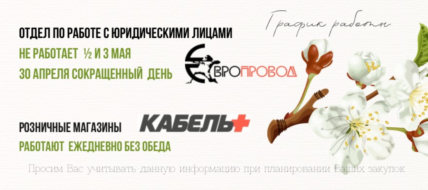 Все цены, указанные на сайте, по умолчанию являются розничными. Мы готовы обслужить вас не только на территории г. Минска, г. Витебска, г. Гродно в наших магазинах “Кабель+”, но и по всей территории РБ с помощью курьерской доставки. Оформляйте заказ через корзину, и наши менеджеры оперативно обработают вашу заявку. Условия доставки и оплаты.