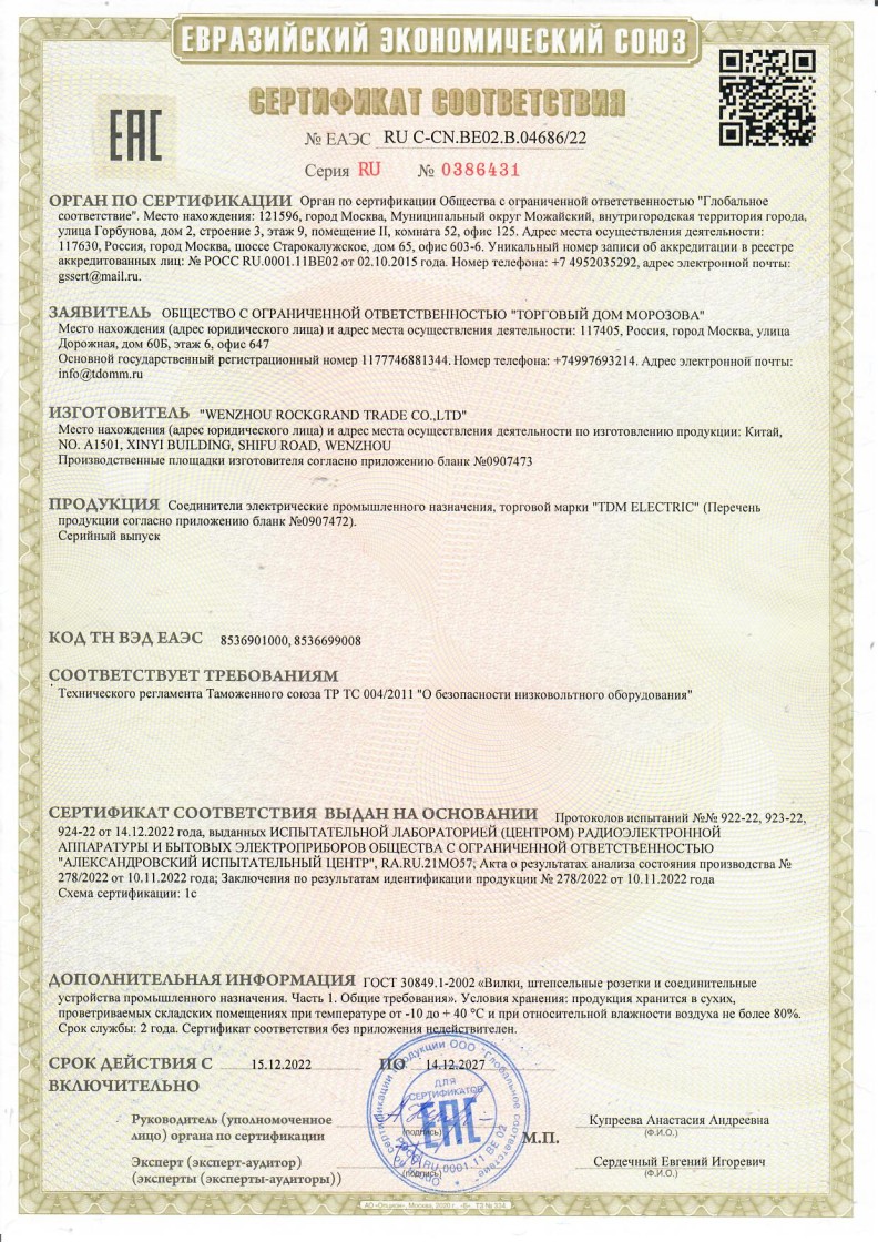ЕАЭС №№ ТС RU С-CN,ВЕ02.В.04686/22 ТДМ+ до 14.12.2027