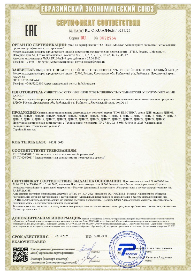 ЕАЭС №ЕАЭС RU С-RU.АЯ46.В.40237/25 ТДМ+ до 22.04.2030