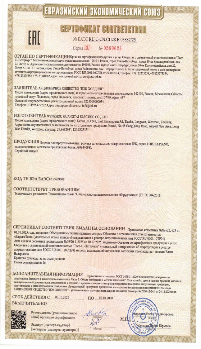№ ЕАЭС RU С-СN.СП28.В.03882/25 (ТР ТС 004/2011) до 02.10.2030