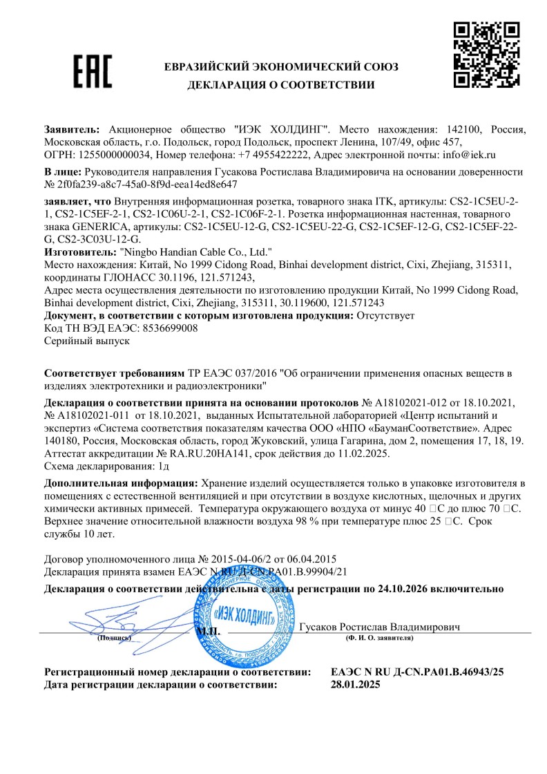 ЕАЭС N RU Д-CN.PA01.B.46943/25 (ТР EАЭС 037/2016) до 24.10.2026