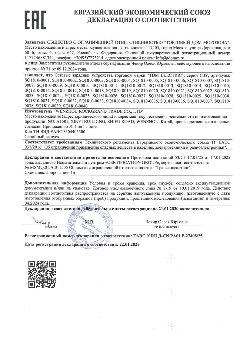 ЕЭСДС 037 №ЕАЭС N RU Д-CN.РA01.В.27408/25 ТДМ до 21.01.2030