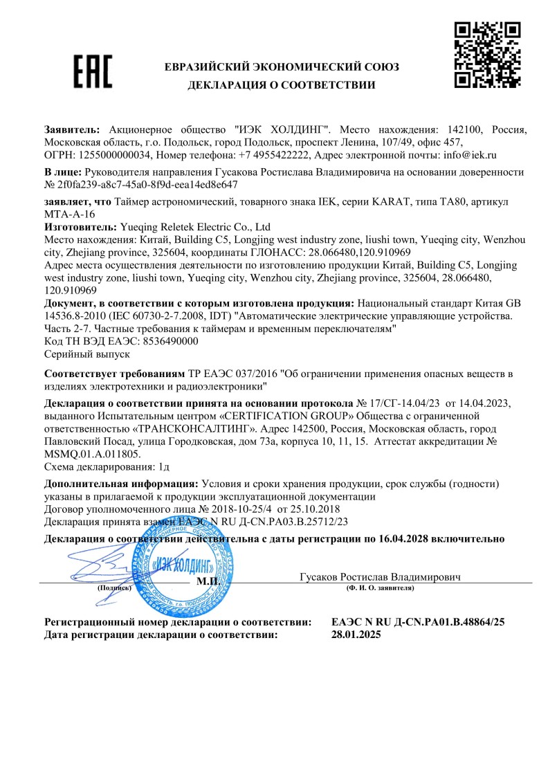 ЕАЭС N RU Д-CN.АЯ4.В.48864/25 (ТР ЕАЭС 037/2016) до 16.04.2028