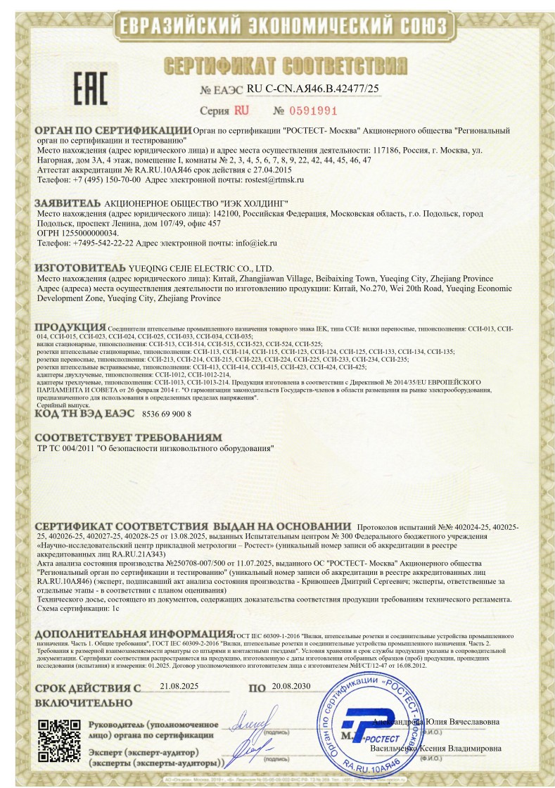 № ЕАЭС RU C-CN.AЯ46.B.42477/25 (ТР ТС 004/2011) до 20.08.2030