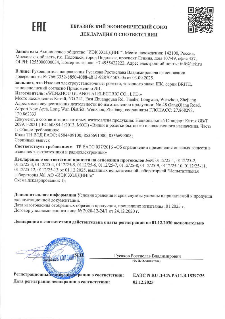 ЕАЭС N RU Д-RU.РА11.В.18397/25 (ТР ЕАЭС 037/2016) до 01.12.2030