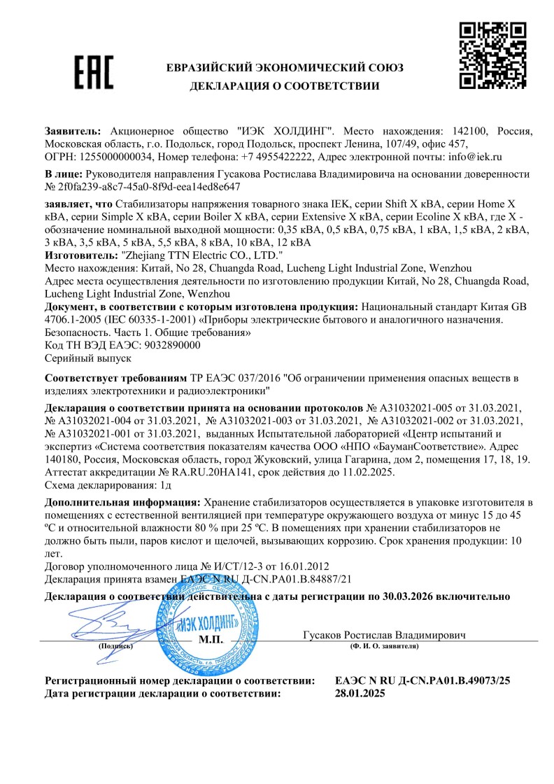 ЕАЭС №RU Д-CN.PA01.B.49073/25 (ТР ЕАЭС 037/2016) до 30.03.2026