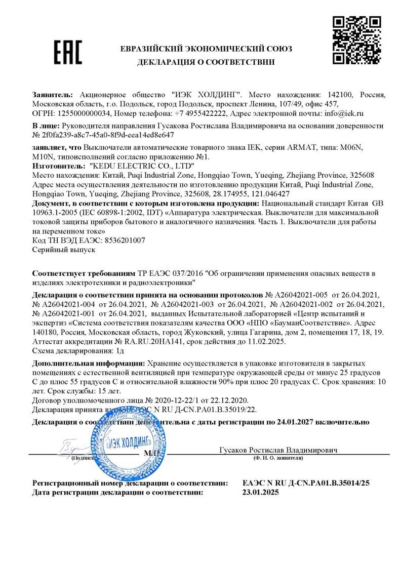 ЕАЭС N RU Д-CN.PA01.B.35014/25 (ТР ЕАЭС 037/2016) до 16.01.2029