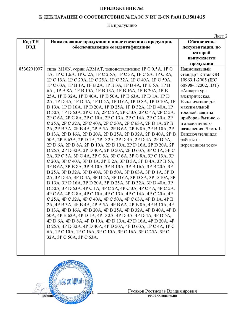 ARMAT Автоматический выключатель M06N 1P D 2А IEK
