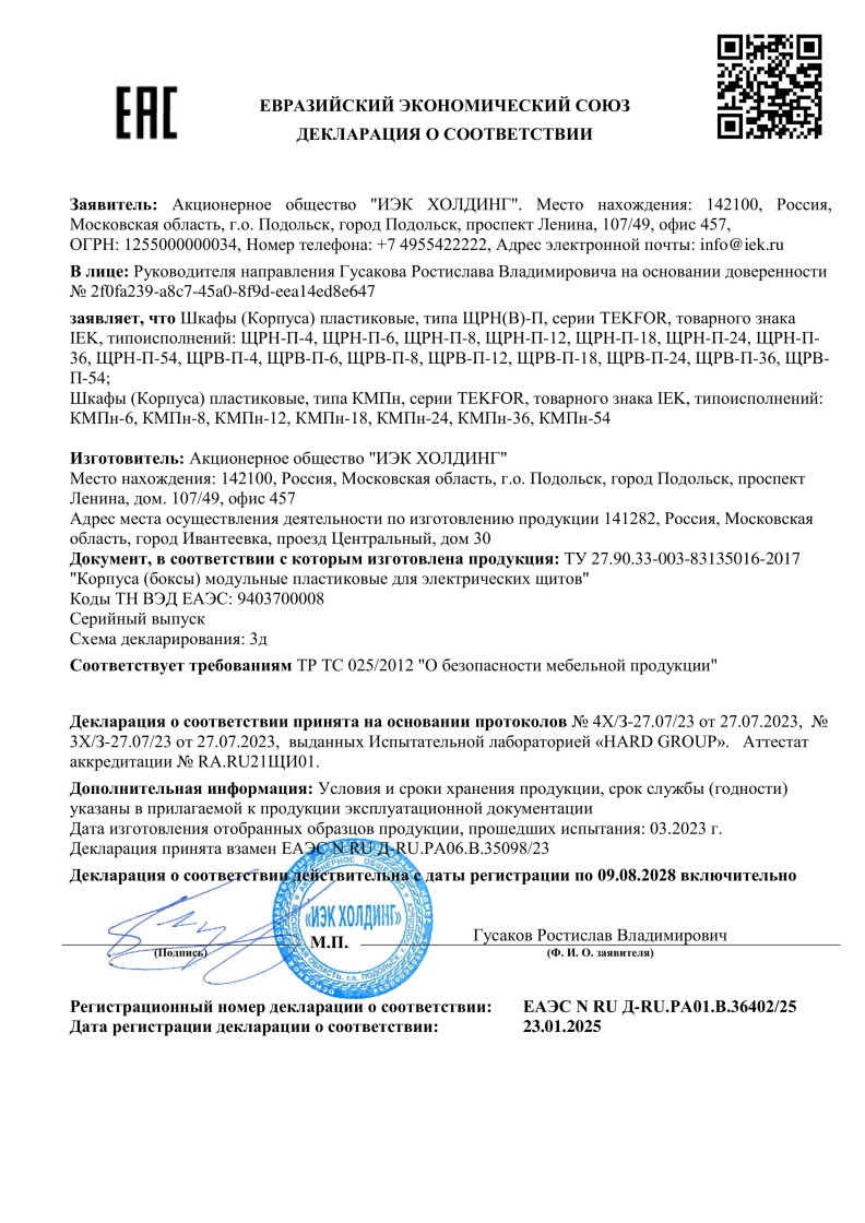 TEKFOR Корпус пластиковый ЩРВ-П-36 IP41 белая дверь IEK