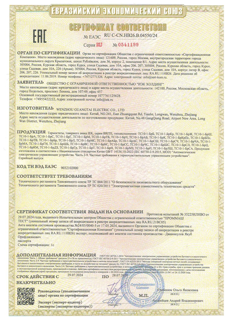 № ЕАЭС RU C-CN.HB26.В.04550/24 (ТР ТС004/2011, ТР020/2011) до 28.07.2029
