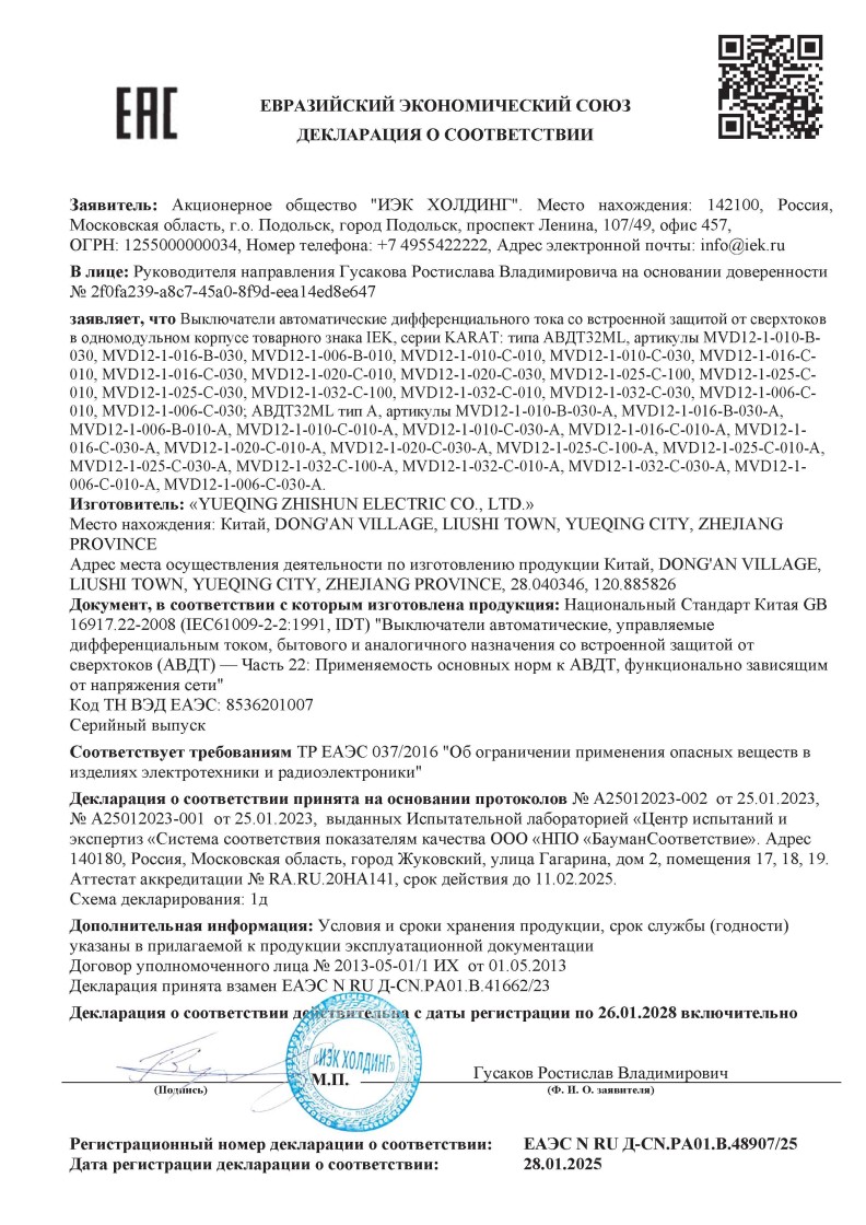 ЕАЭС №RU Д-CN.PA01.В.48907|25 (ТР ЕАЭС 037/2016) до 26.01.2028