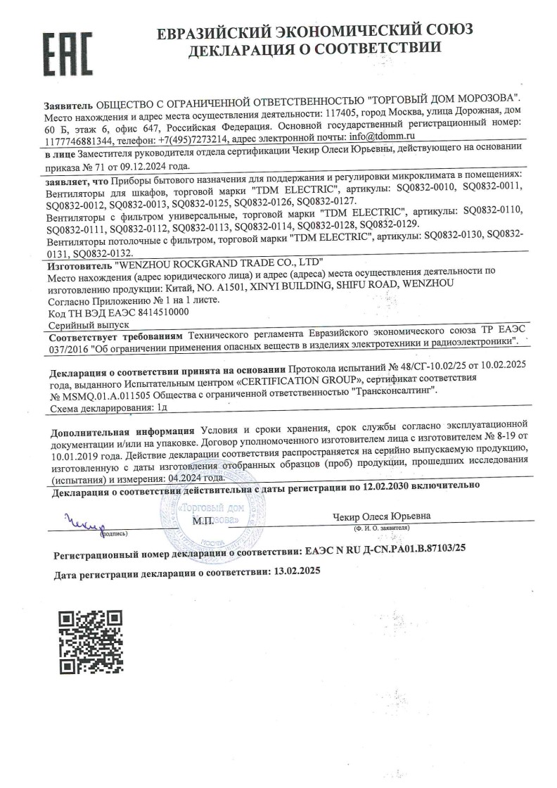 ЕЭСДС 037 №ЕАЭС N RU Д-CN.РА01.В.87103/25 ТДМ до 12.02.2030