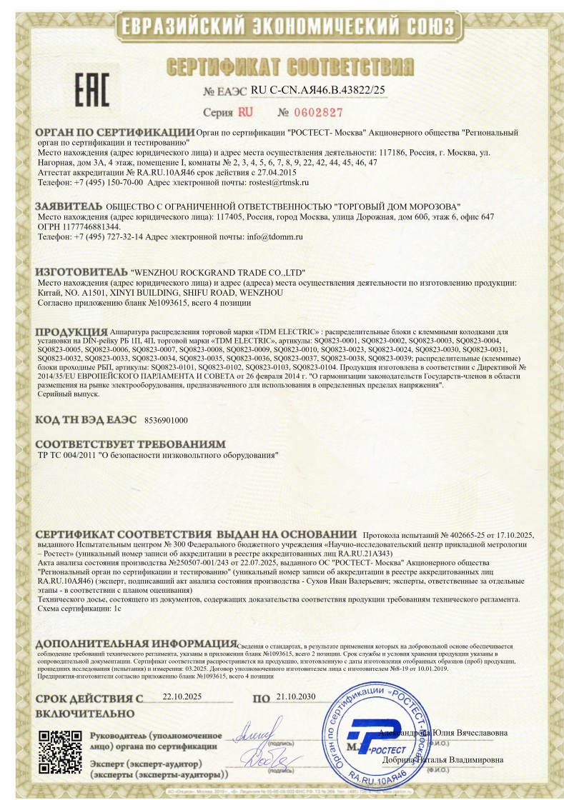 ЕАЭС №ЕАЭС RU С-CN.АЯ46.В.43822/25 до 21.10.2030