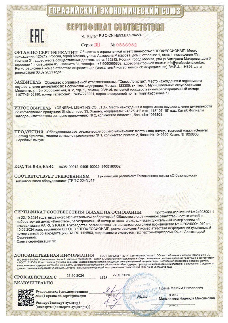 ЕАЭС №ЕАЭС RU С-СN.НВ93.В.05784 GENERAL до 22.10.2029