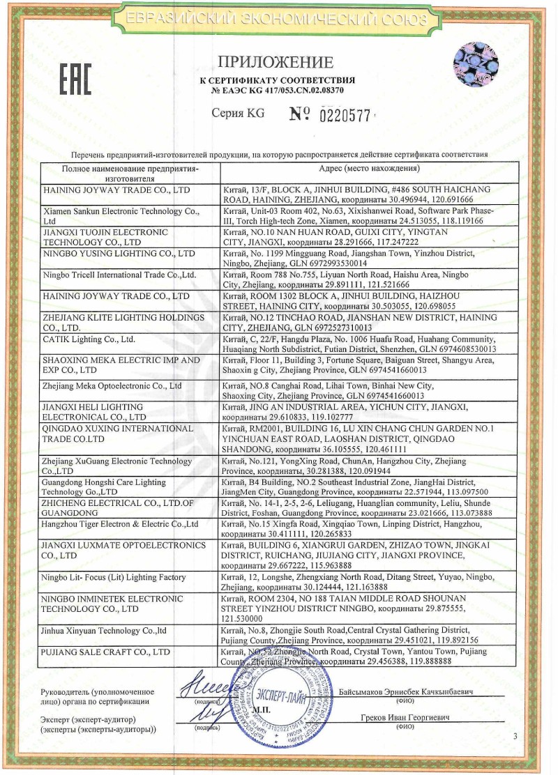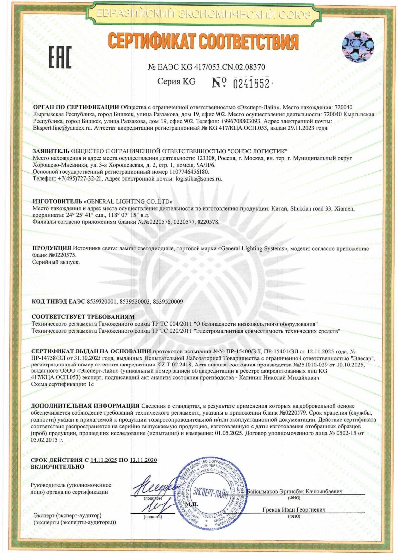 ЕАЭС №KG417/053 СN.02.08370 general до 13.11.2030