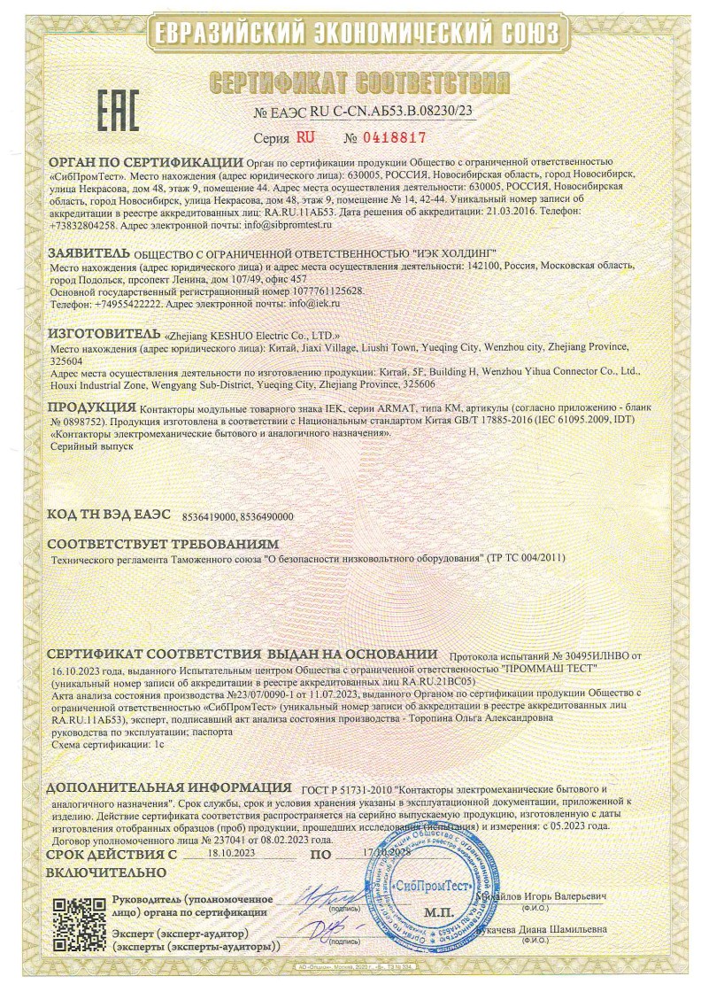 № ЕАЭС RU C-CN.АБ53.В.08230/23 (ТР ТС 004/2011) до 17.10.2028