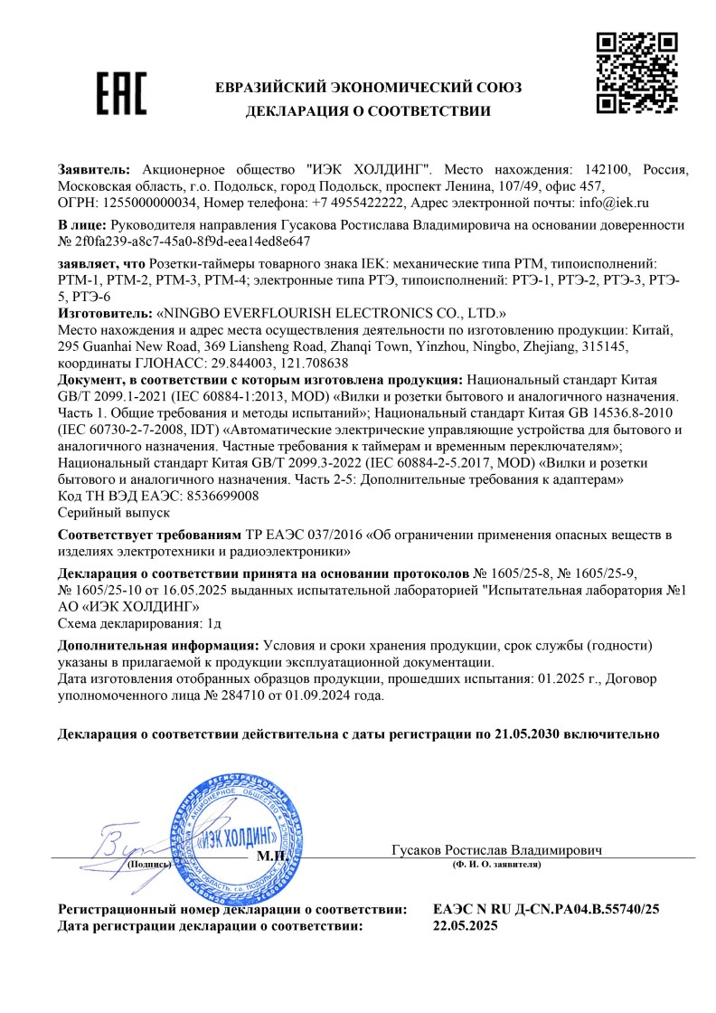 ЕАЭС №RU Д-СN.РА04.В.55740/25 (ТР ЕАЭС 037/2016) до 21.05.2030