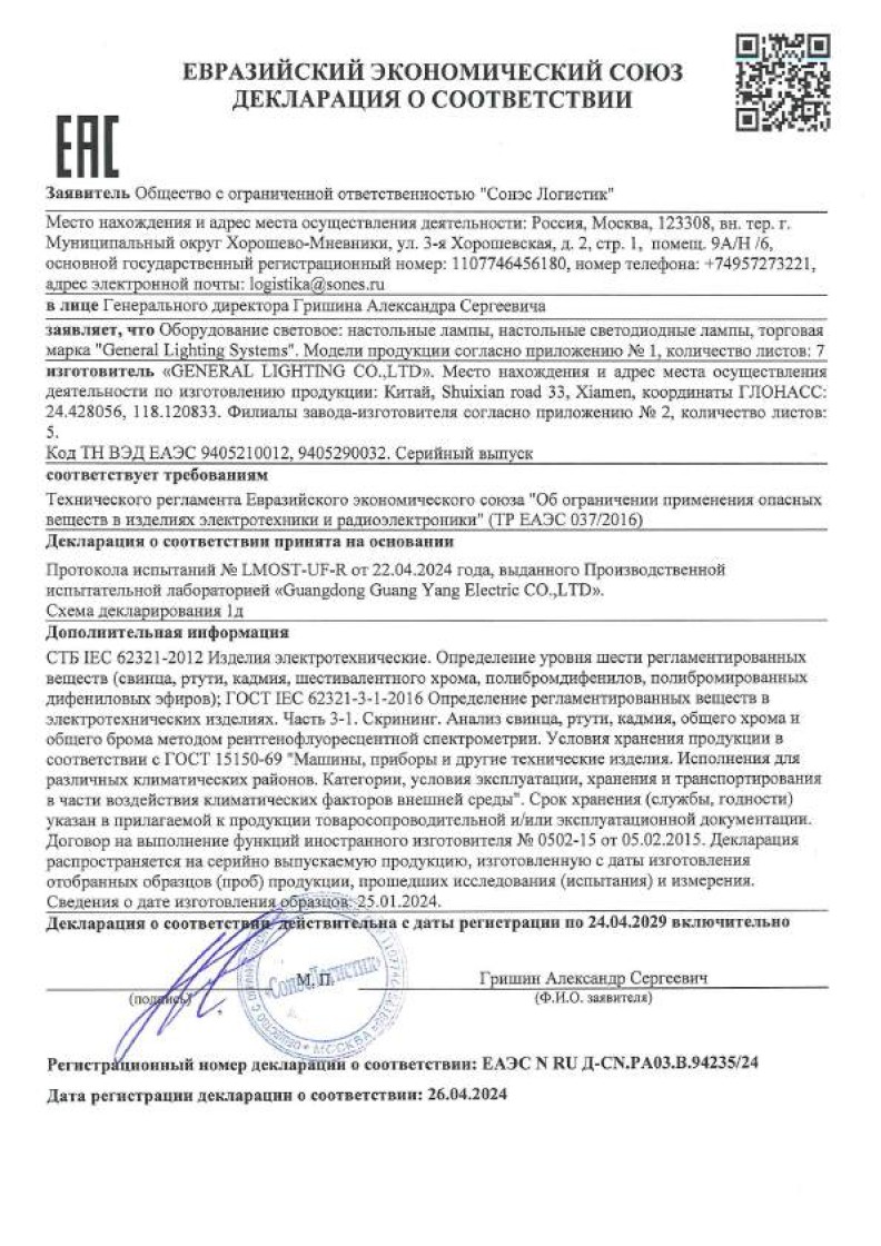 ЕЭСДС 037 №ЕАЭС N RU Д-CN.РА03.В.94235/24 General+(ТС 037) до 24.04.2029