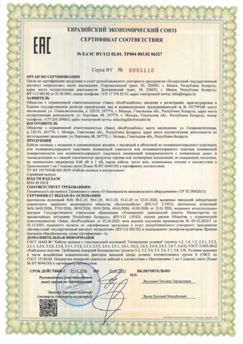 № ЕАЭС BY/112 02.01. ТР004 06327 (ТР ТС 004/2011) до 22.01.2031