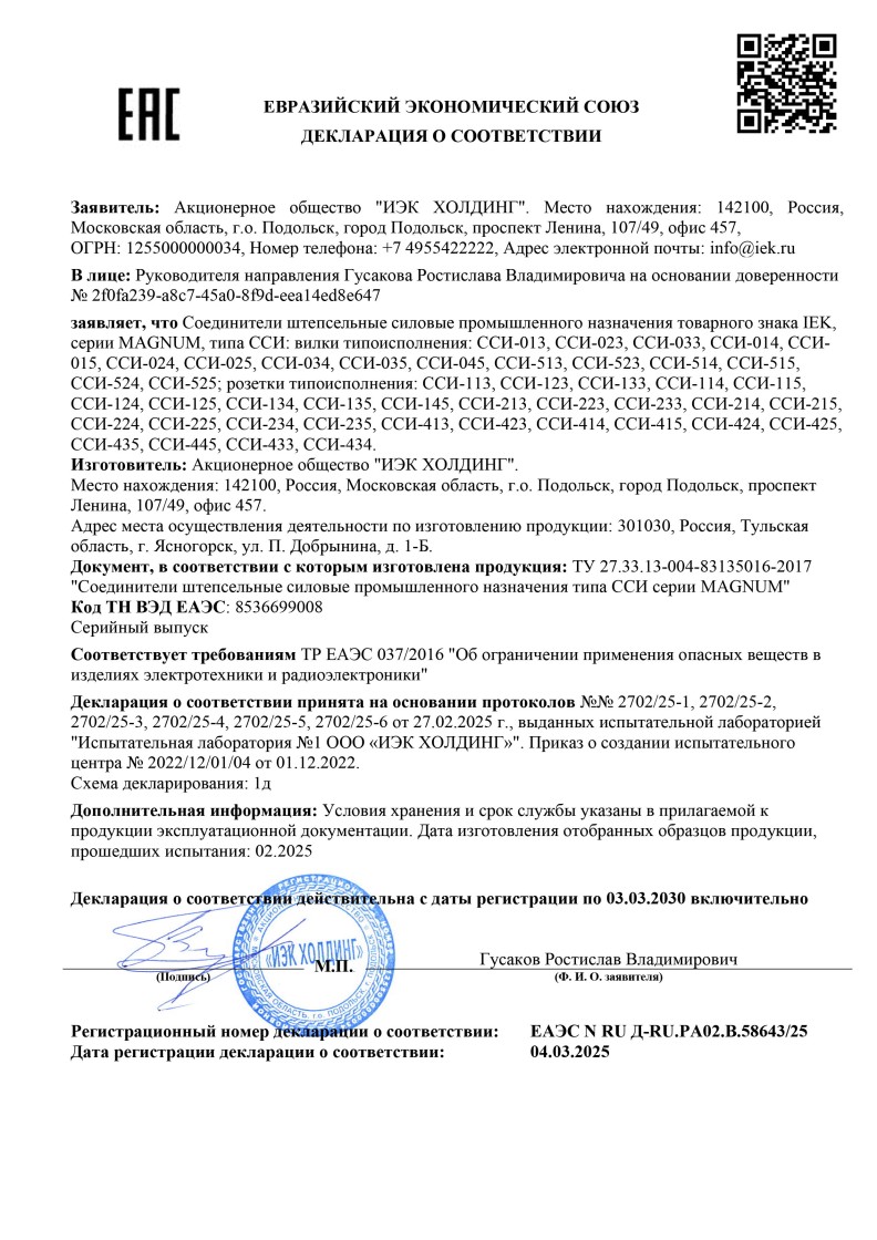ЕАЭС N RU Д-RU.PA02.B.58643/25 (ТР ЕАЭС 037/2016) до 03.03.2030