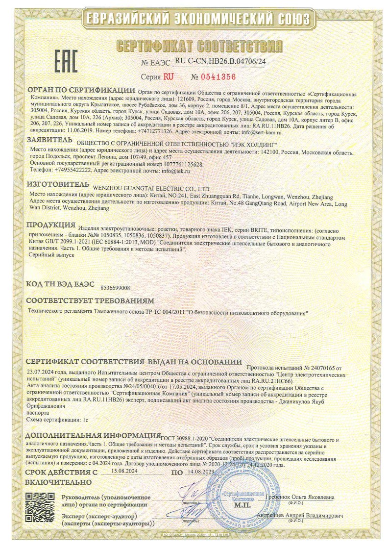 № ЕАЭС RU C-CN.HB26.В.04706/24 (ТР ТС004/2011, ТР020/2011) до 14.08.2029