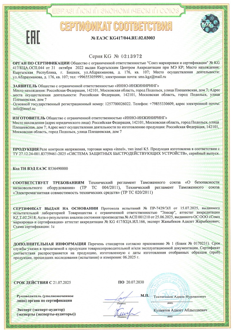 ЕАЭС №ЕАЭС KG417/044.RU.02.03003 до 20.07.2030