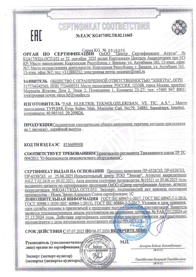 ЕАЭС №ЕАЭС KG470/052.TR.02.11665 до 06.07.2030