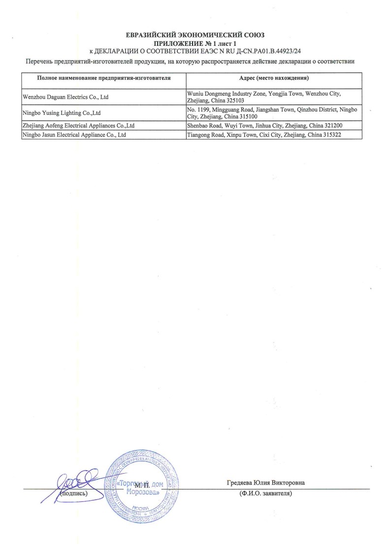 Список товаров, попадающих под этот сертификат