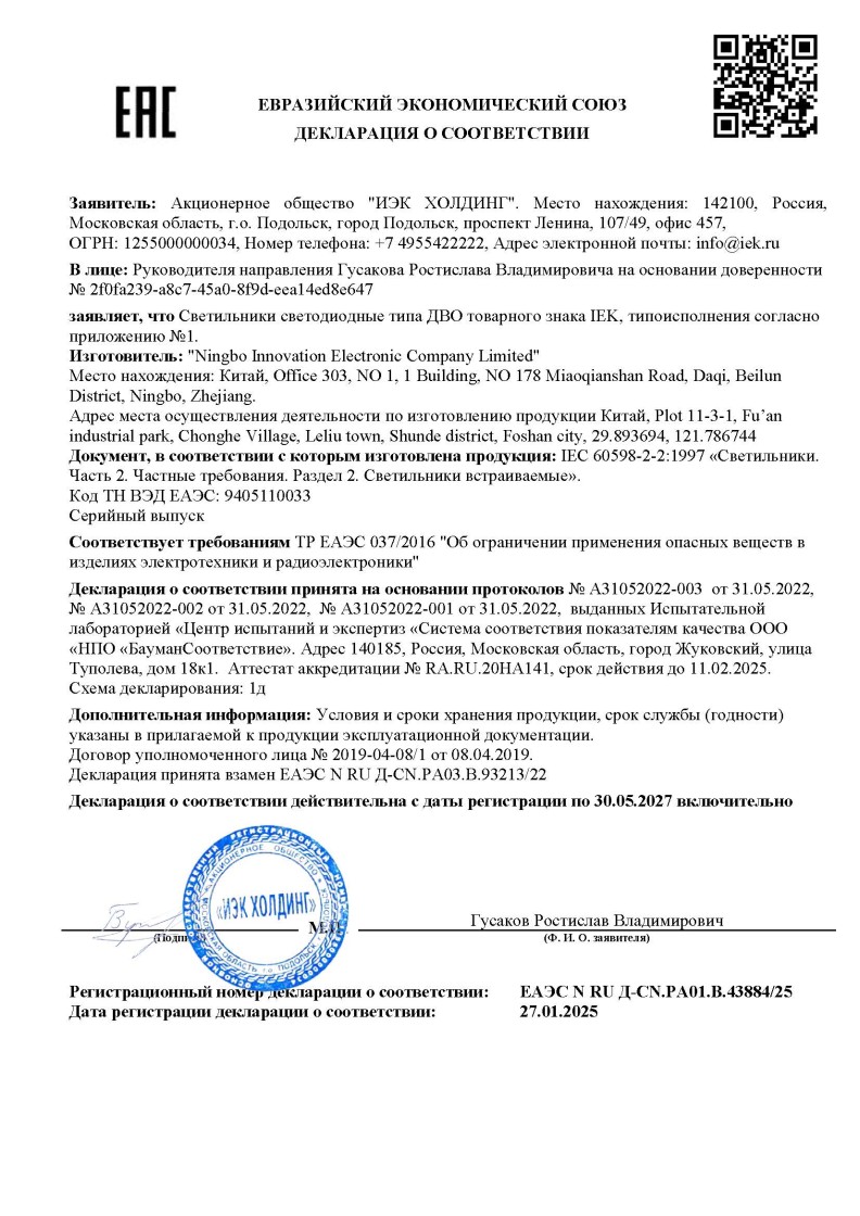 ЕАЭС N RU Д-СN.PA01.B.43884/25 (ТР ЕАЭС 037/2016) до 30.05.2027