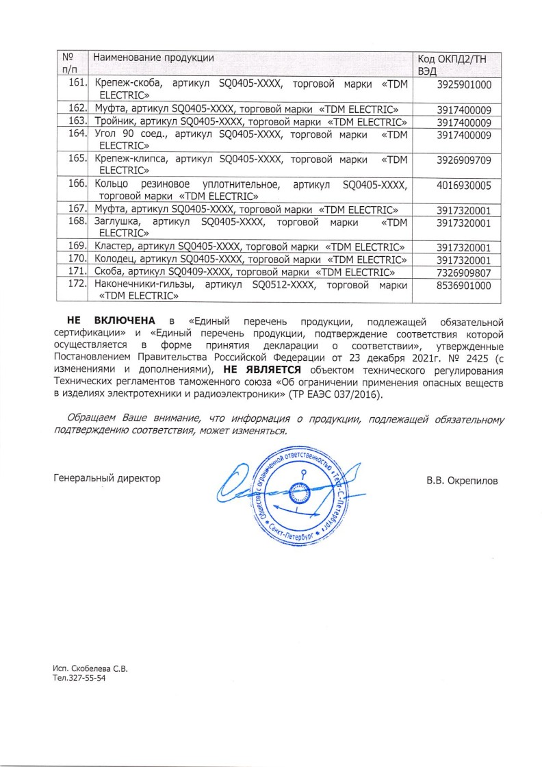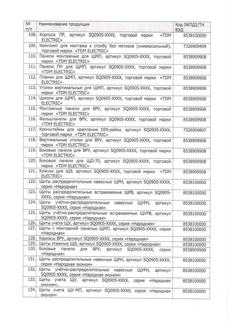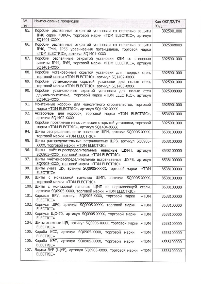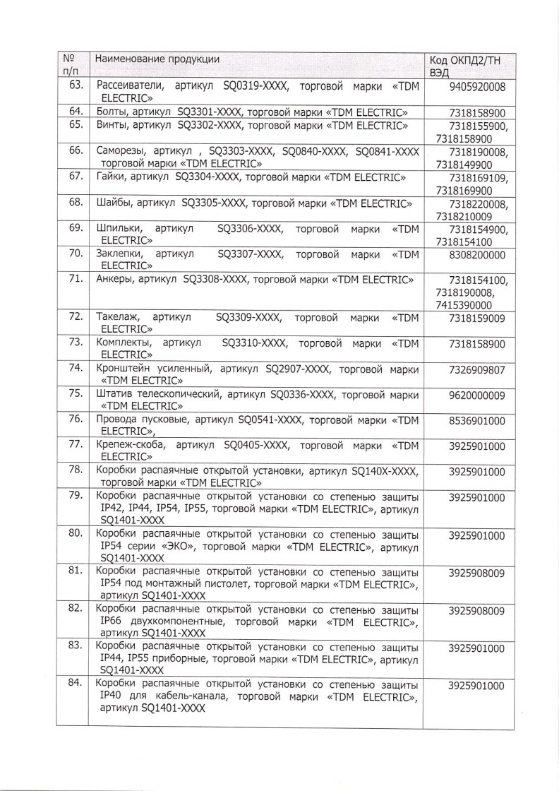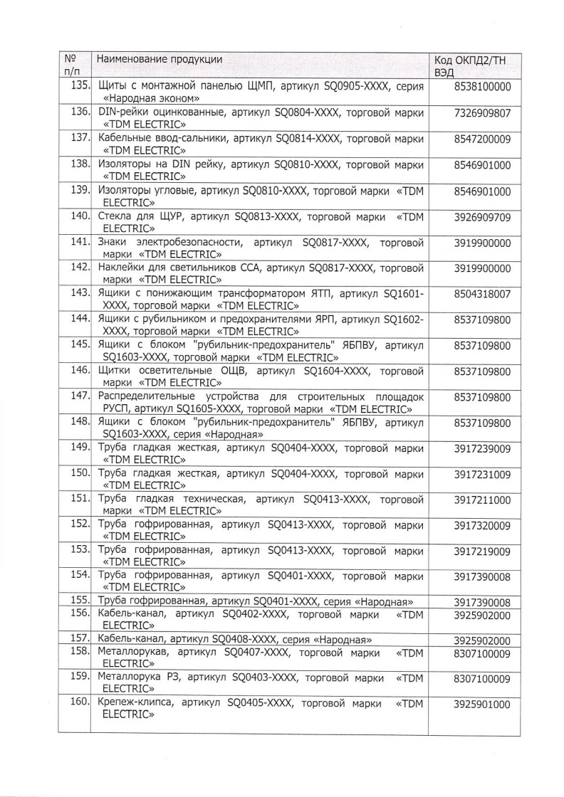 Список товаров, попадающих под этот сертификат