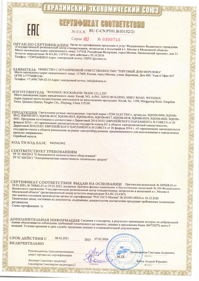 ЕАЭС №RU С-CN.РТ01.В.03152/21 ТДМ до 07.02.2026