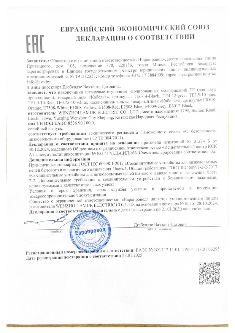 ЕЭС ДС №ЕАЭС № BY/112 11.01. ТР004 118.01 06295 до 21.01.2030