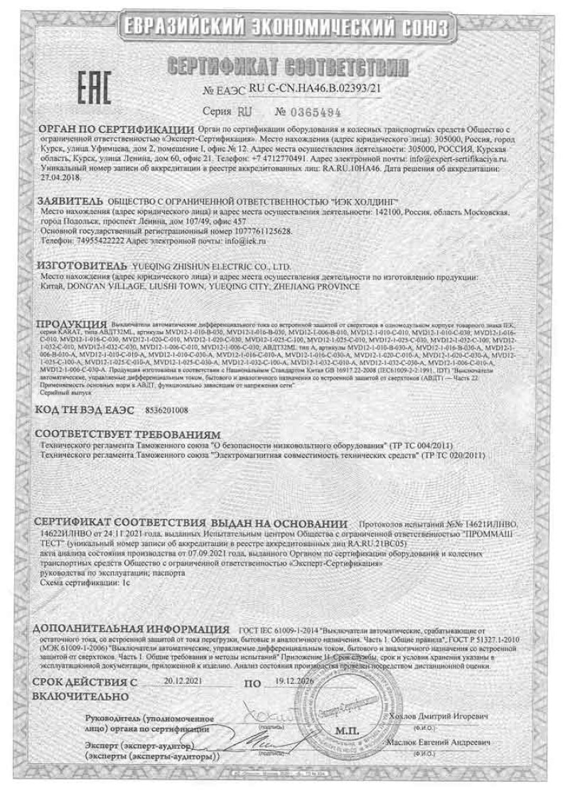 ЕАЭС №RU С-СN.НА46.В.02393/21 (ТР ТС 004/2011, ТР ТС 020/2011) до 19.12.2026