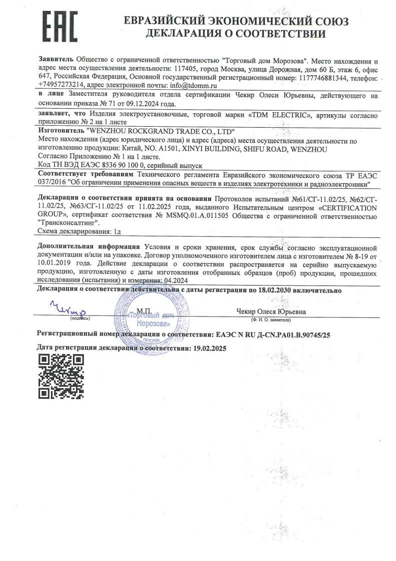 № ЕАЭС RU C-CN.АЯ46.В.45283/25 (ТР ТС 004/2011) до 29.12.2030