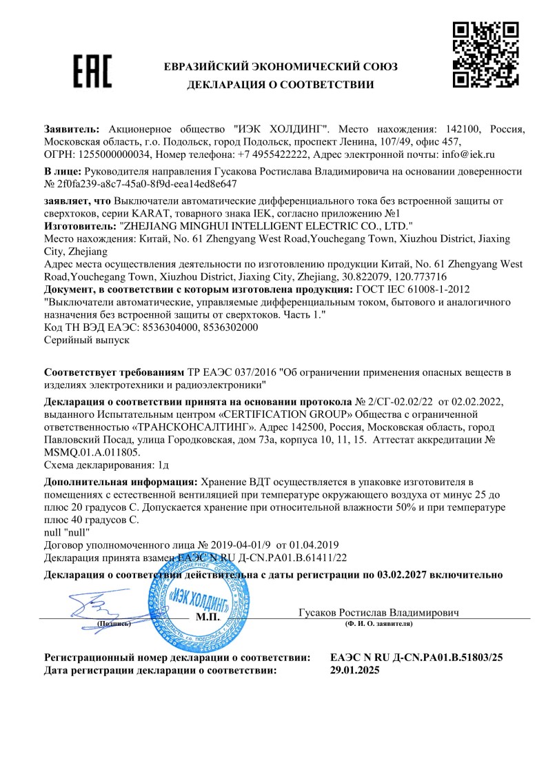 ЕАЭС №RU Д-CN.РА01.В.51803/25 (ТР ЕАЭС 037/2016) до 03.02.2027