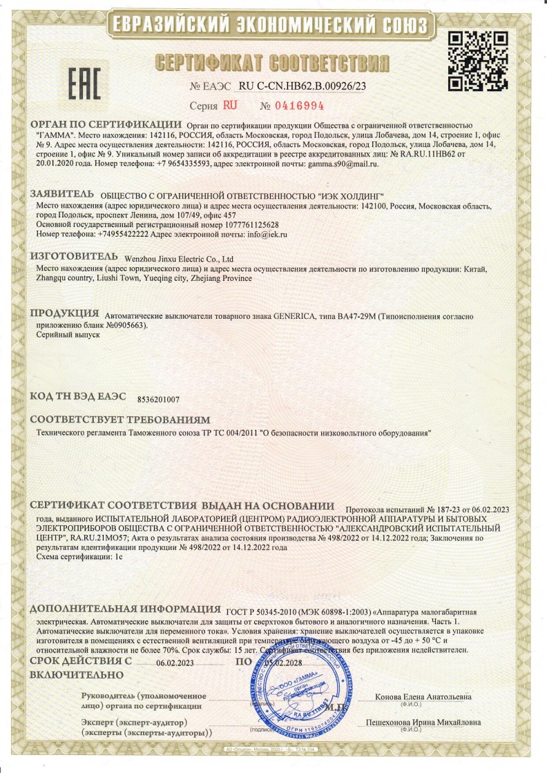 № ЕАЭС RU C-СТ.НB62.В.00926/23 ( (ТР ТС 004/2011) до 05.02.2028