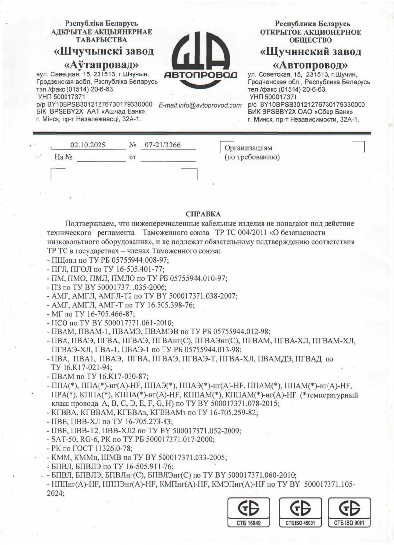 Список товаров, попадающих под этот сертификат