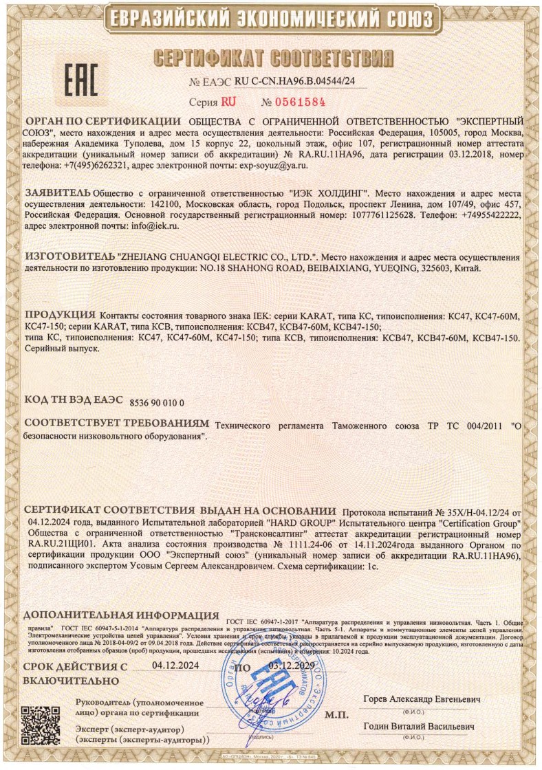 № ЕАЭС RU C-CN.НА96.В.04544/24 (ТР ТС 004/2011) до 03.12.2029