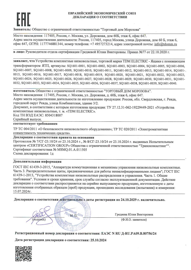 ЕЭС ДС №ЕАЭС N RU Д-RU.PА09.B.80756/24 ТДМ до 24.10.2029