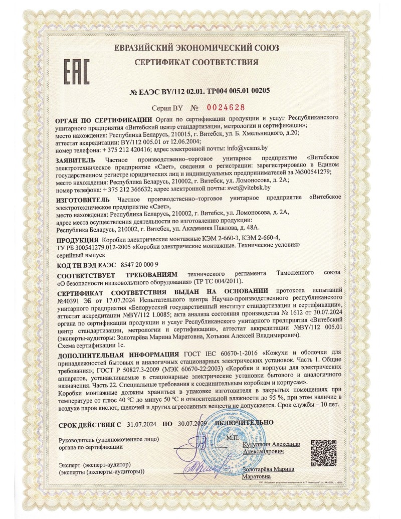 ЕАЭС №ЕАЭС BY 02.01. ТР004 005.01 00205 СВЕТ до 30.07.2029