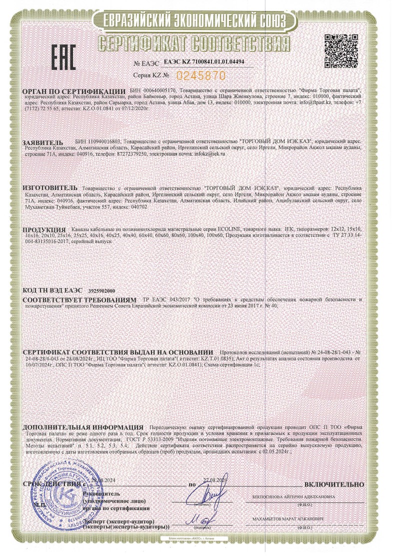 ЕАЭС №KZ 7100841.001.01.04494 ( (ТР ЕАЭС 043/2017) до 27.08.2029