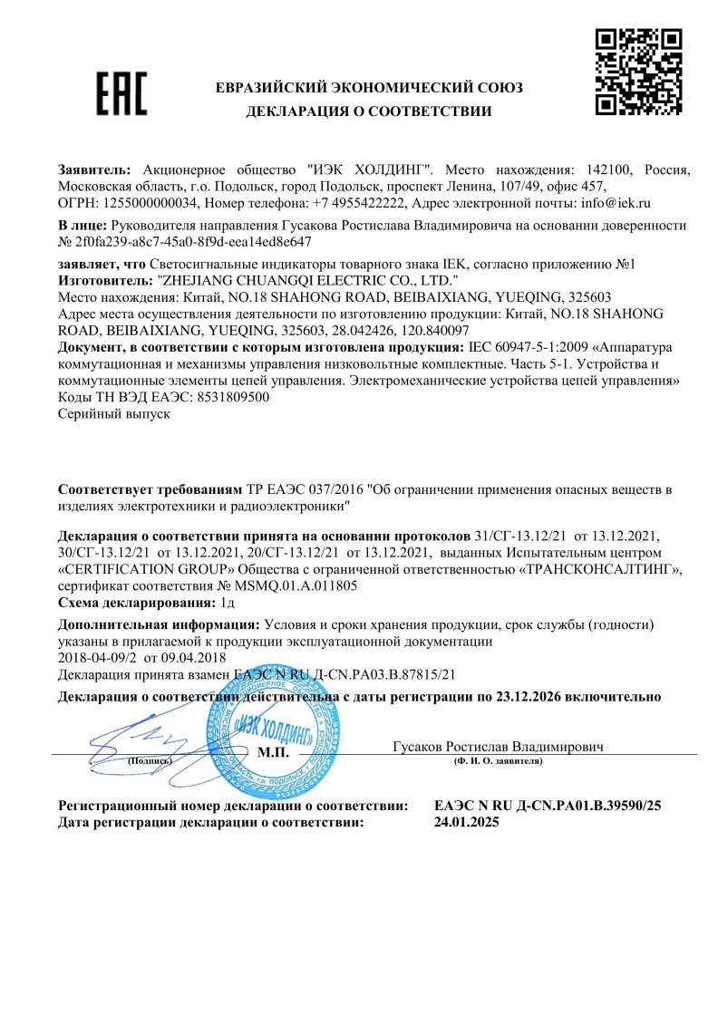 ЕАЭС N RU Д-CN.РА01.В.39590/25 (ТР ЕАЭС 037/2016) до 23.12.2026