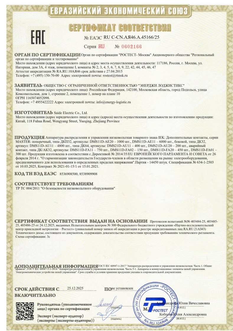 № ЕАЭС RU C-CN.AЯ46.B.45166/25 (ТР ТС 004/2011)