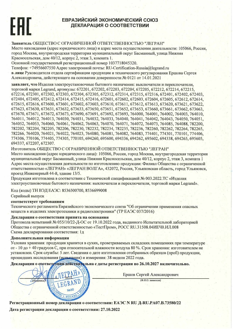 ЕАЭС N RU Д-RU.PA07.В.73580/22 (ТР ЕАЭС 037/2016) до 26.10.2027