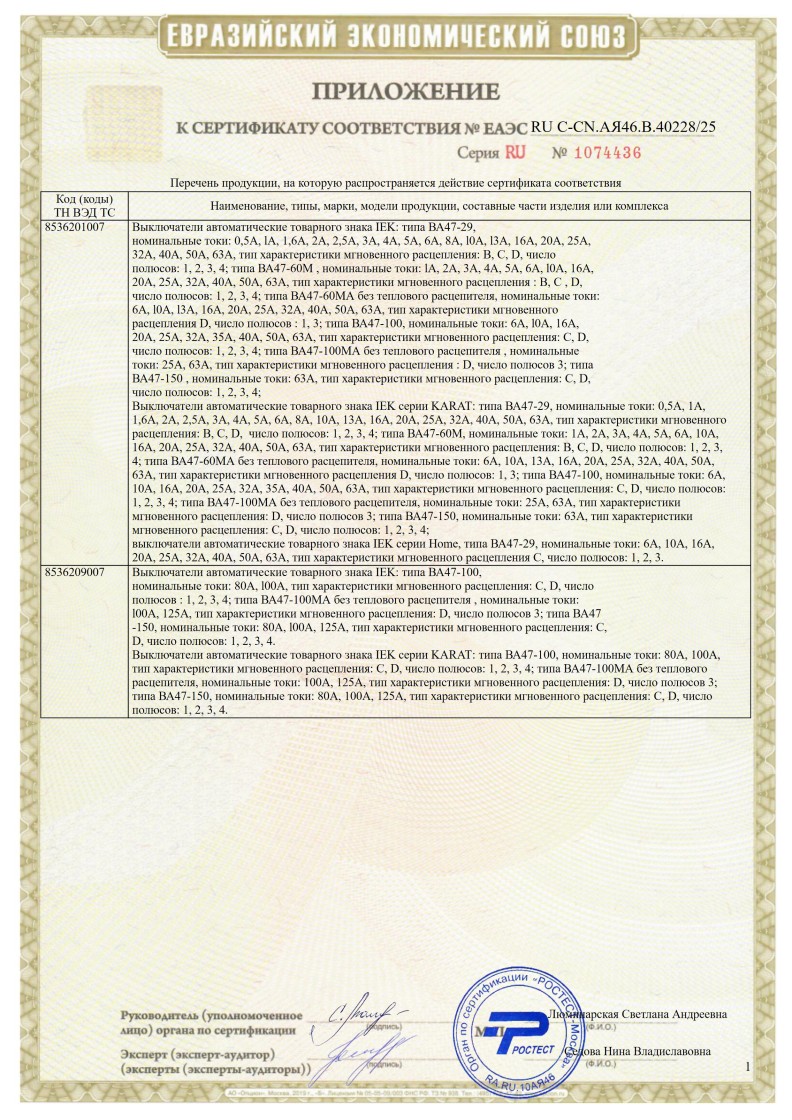 ЕАЭС №ЕАЭСRU C-CN.АЯ46.В.40228/25 ИЭК АО до 22.04.2030