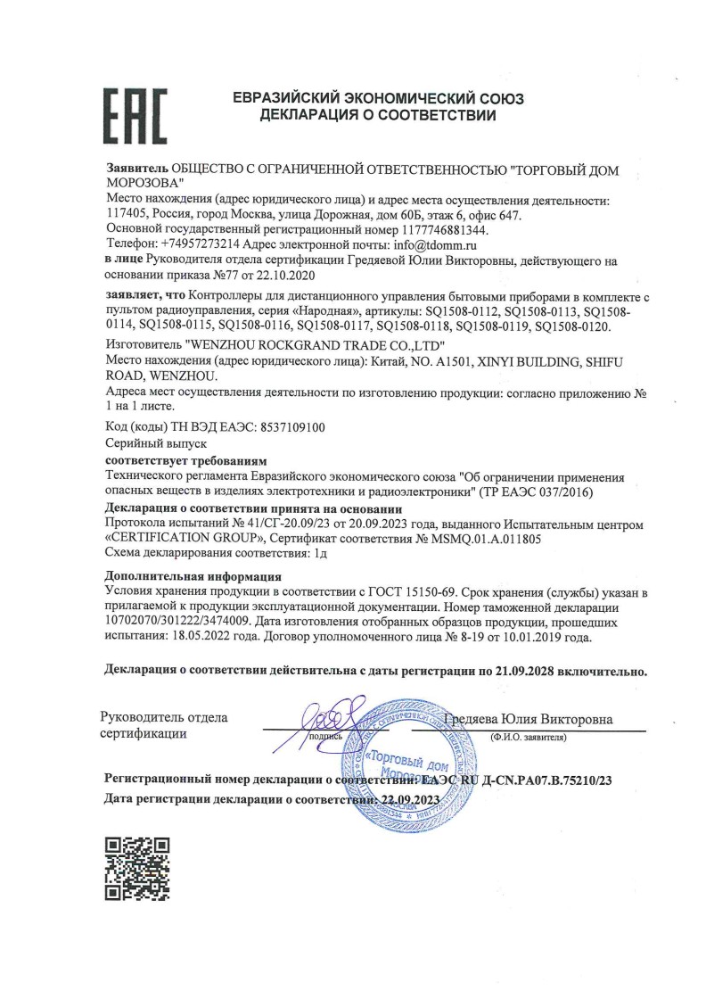 ЕЭСДС 037 №ЕАЭС RU Д-CN.РА07.В.75210/23 ТДМ до 21.09.2028