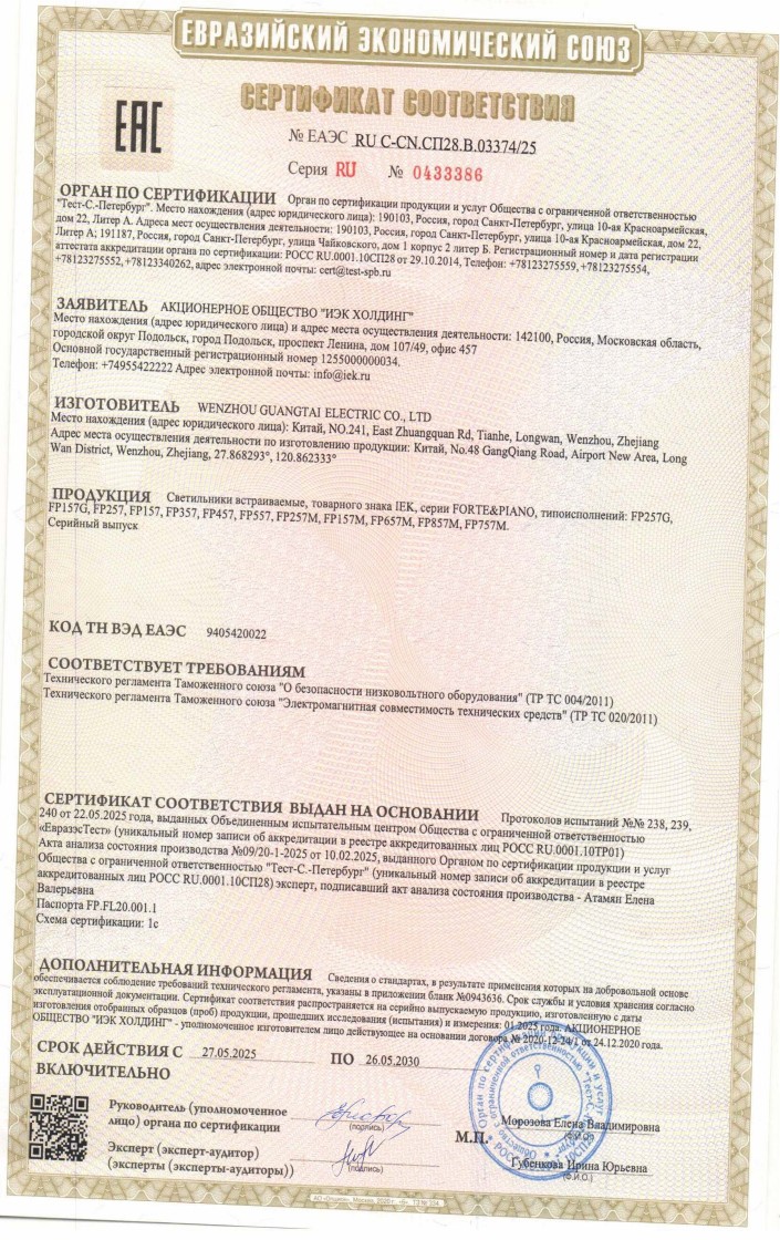 № ЕАЭС RU С-CN.СП28.В.03374/25 (ТР ТС 004/2011, ТР ТС 020/2011) до 26.05.2030