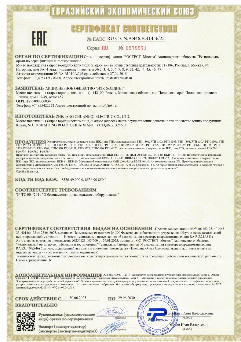 № ЕАЭС RU С-СN.АЯ46.В.41456/25 (ТР ТС 004/2011) до 29.06.2030