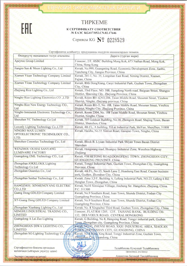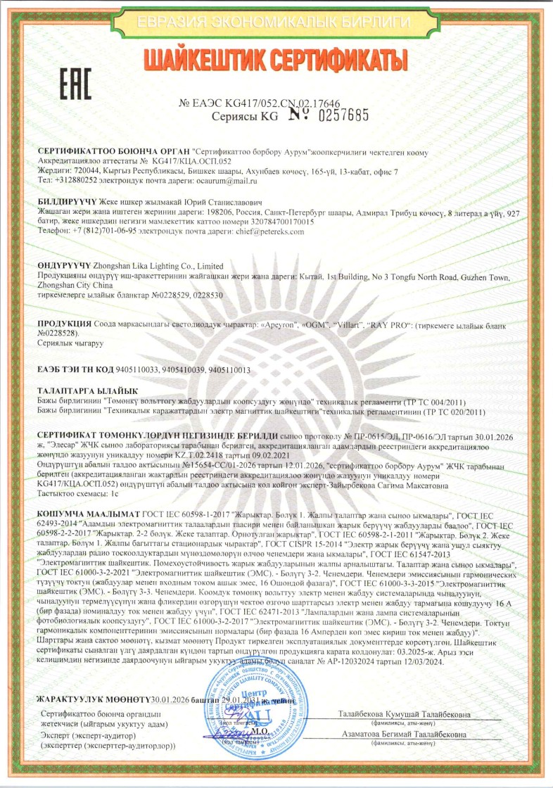 СТС №ЕАЭС KG417/052.CN.02.17646 до 29.01.2031