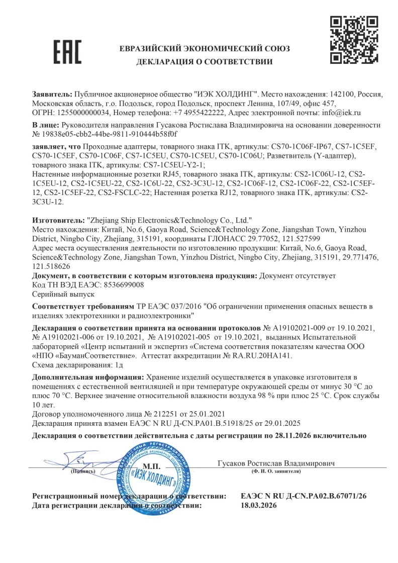ЕАЭС N RU Д-CN.PA02.B.67071/26 (ТР ЕАЭС 037/2016) до 28.11.2026